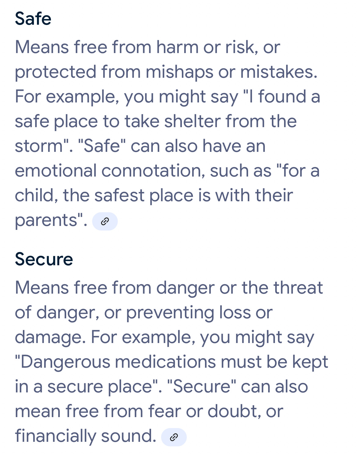 I knew what she meant in the moment that she said it, but when I looked up safety vs. security just now, this came up: